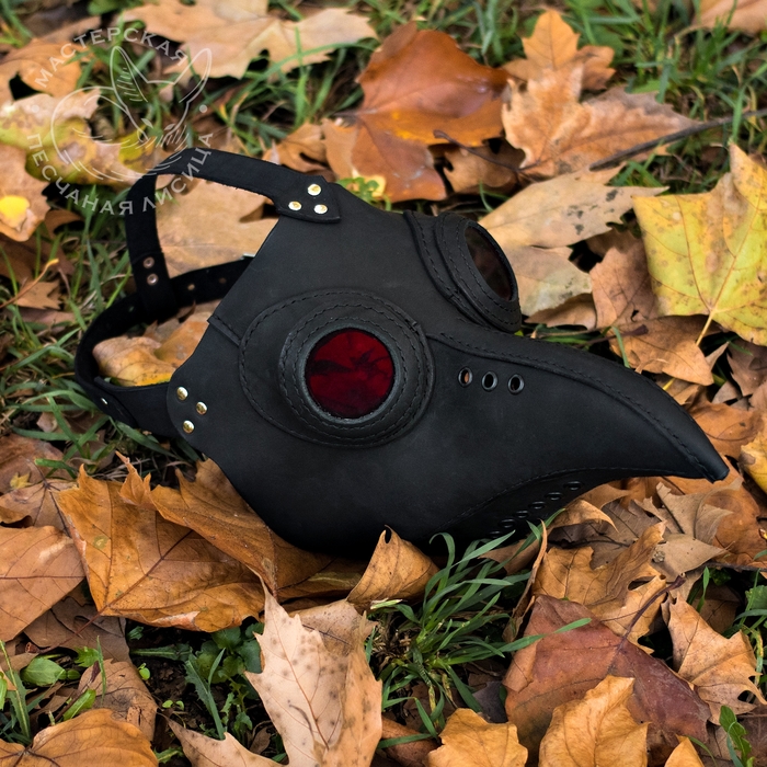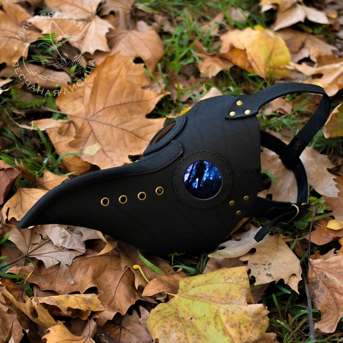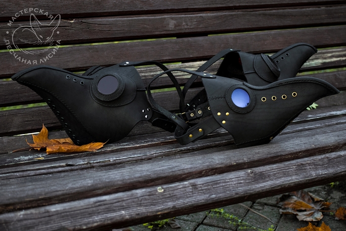 Пятый пункт - маска чумного доктора, кожа крс в рыже-коричневом цвете. Оранжевые окуляры с эффектом поляризации.