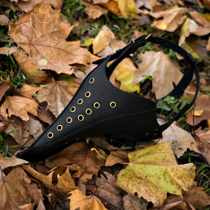 Третий пункт - маска-респиратор. Кожа крс двух цветов, металлическая фурнитура. Медицинскими свойствами не обладает. Используется как антураж на тематических мероприятиях (постапокалипсис, техногенные фантастические сеттинги, и т.д.). А так успешно используется как надежная защита от ветра и холода (при быстрой езде на велосипедах\мотоциклах в неблагоприятных погодных условиях или просто пешком, если ветер сам по себе очень сильный и очень холодный).