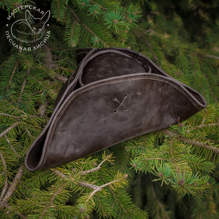 Третий пункт - выбор самых смелых и бесшабашных бродяг - треуголка из винтажной глянцевой кожи крс в цвете "горький шоколад"