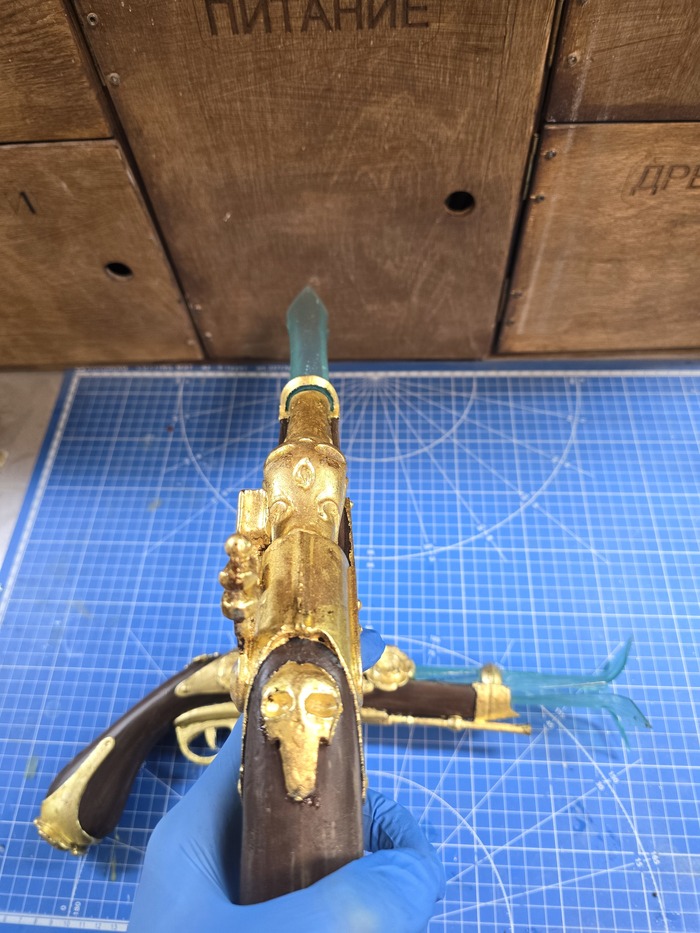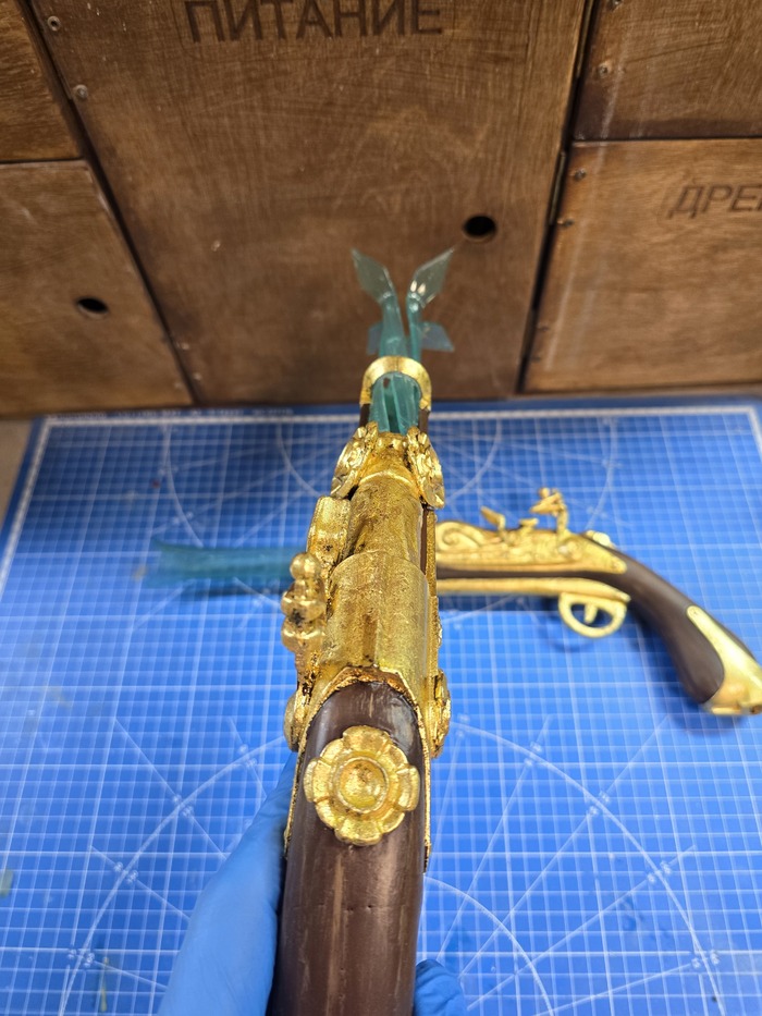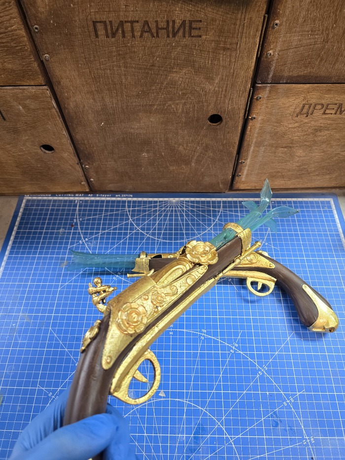 Удивительно, но практически все отлично встает на свои места! если бы с вестаром было бы также! так как без сложностей не интересно, то спусковой крючок, кнопка и переключатель должны быть подвижными. да, хотелось еще сделать место под установку энергоячейки, но это на когда нибудь потом, не охота настолько заморачиваться. Оптика пока отложена на неопределенный срок - тк использовать деталь от "собери телескоп" я не хочу, покупать монокуляр или какую нибудь страйкбольную пока жаба душит, поэтому сверху пока будет плашка, скрывающая пазы для крепления оптики и прочего. Теперь нужно все склеить, залить внутрь эпоксидку, ведь не забываем мудрость "Тяжесть — это хорошо. Тяжесть — это надежно. Даже если не выстрелит, таким всегда можно дать по голове.", да и бонус к крепости самой модели. на этом этапе были сложности, но связанные с внешними причинами в виде рыжего шерстяного чудища. Шлифуем, и красим, покрываем лаком