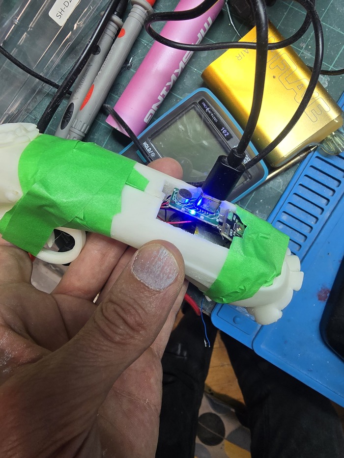 готовый (почти-почти) с прототипом энергоячейки) и еще собираемый бластер