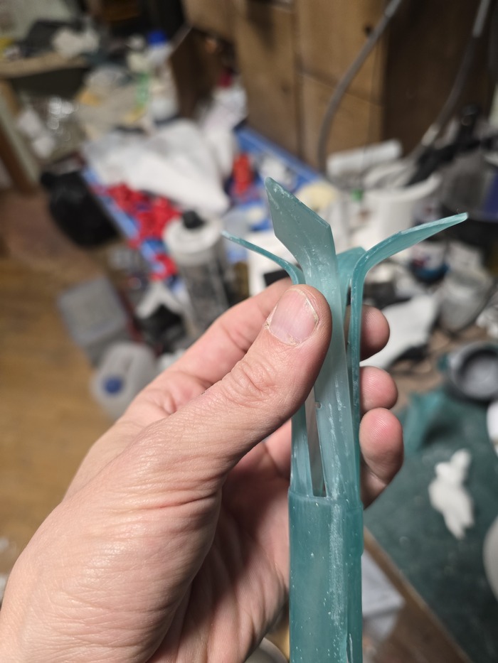молд готов и пора сделать пробник, чтобы посмотреть, что же у нас получилось. прям идеальности от него не ждем, пока главное хоть как нибудь залить, чтобы ваяснить все нюансы при отливке чистового.