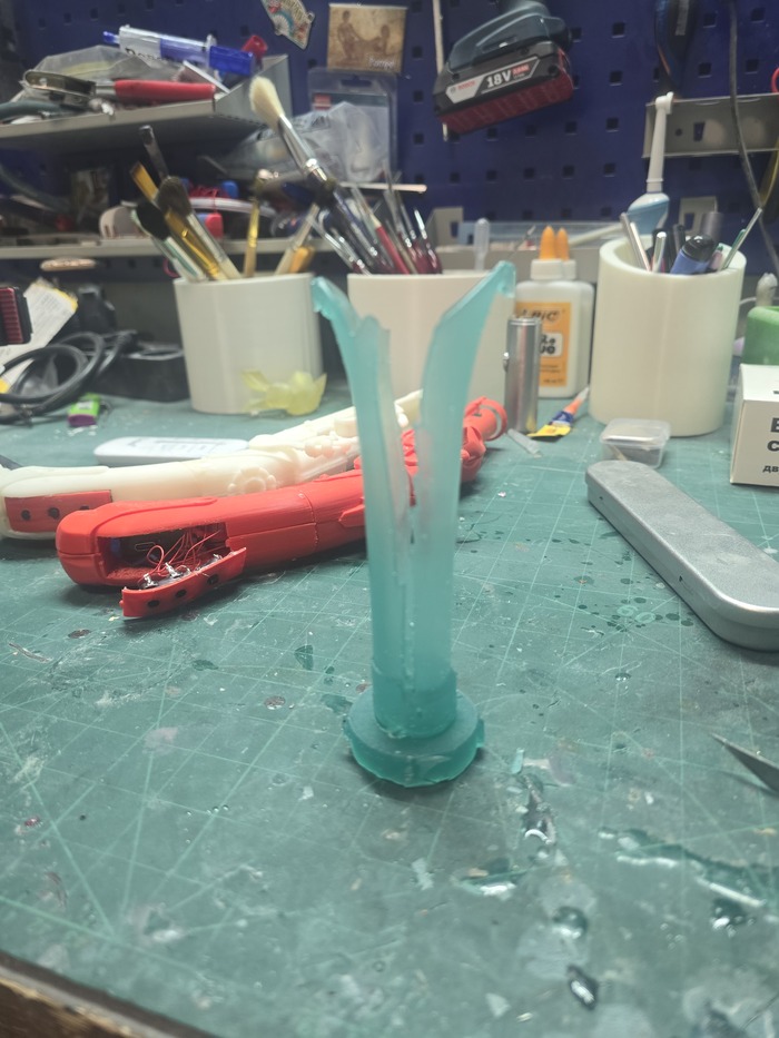 Нижняя часть самая замороченная, поэтому если для остальных деталей молдов два, то под эту сразу 4, тк заливается в несколько этапов.