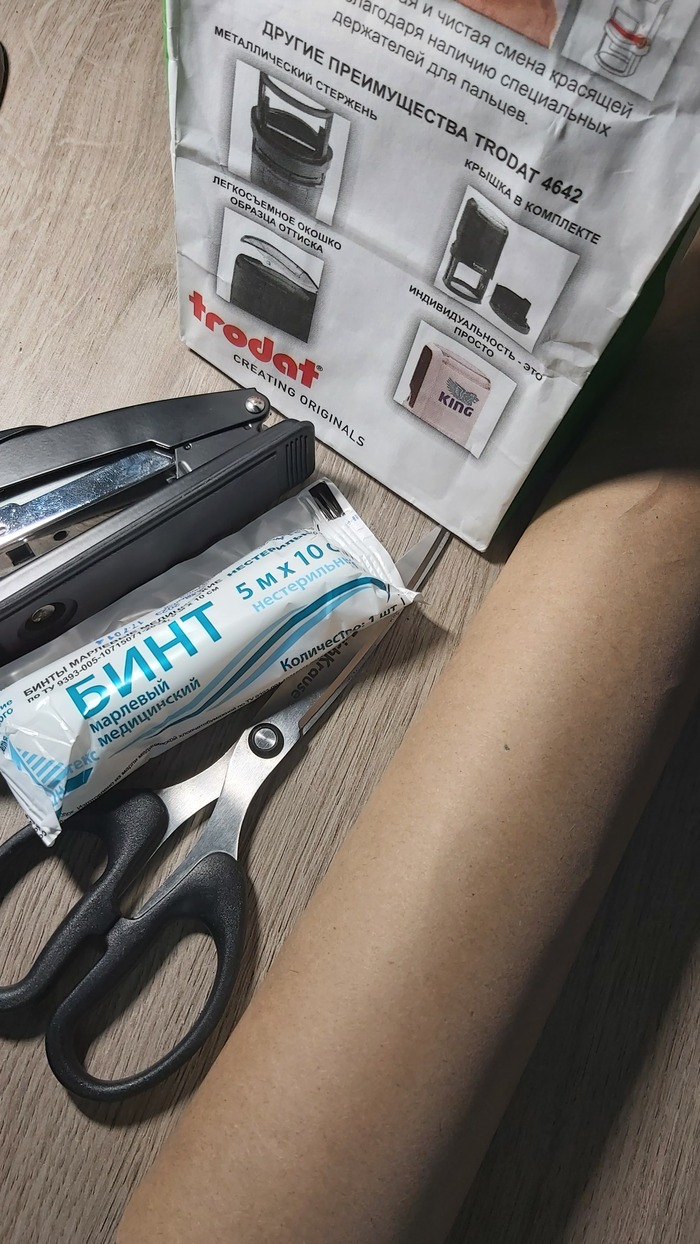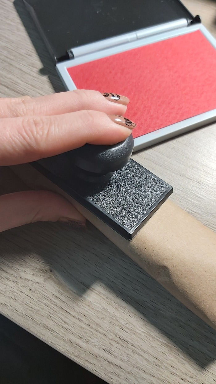 И штампую бинт, прислоняя штамп к бумаге перекатывающимся движением вверх-вниз.