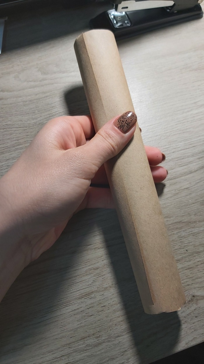 Заворачиваю бумагу внутрь отразовавшихся торцов цилиндра.