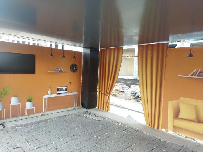 складывается впечатление, что перед нами не просто место, где останавливается транспорт, но и комната для переговоров