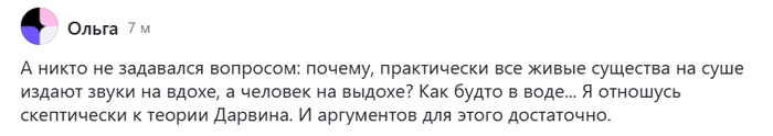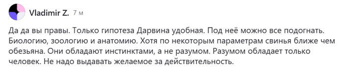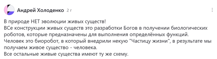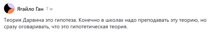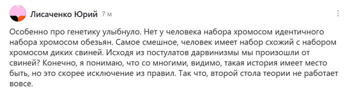 Да, происхождение человека это отдельная боль. Очень много комментаторов не против ТЭ, но сильно против биологического родства человека и обезьян.