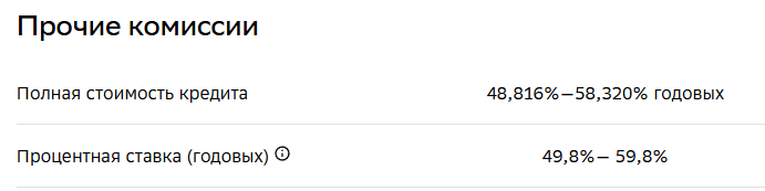 Кстати, как именно у них получается полная стоимость кредита 48,816% годовых, я так и не понял. Если кто-то в комментариях сможет объяснить эту магию - буду благодарен.