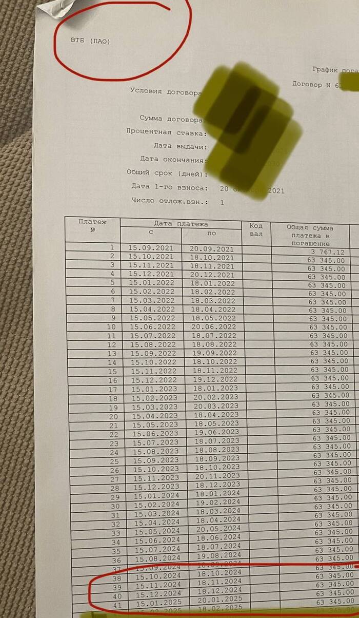 Красным даты платежей с 10.24 по 02.25 и суммы. Сверьте ср
