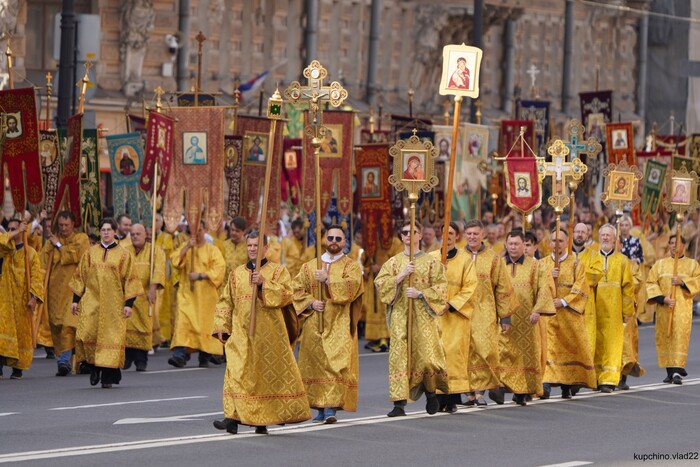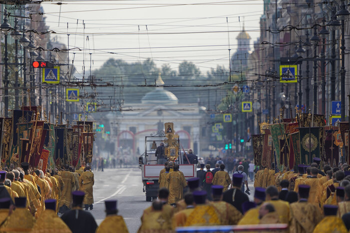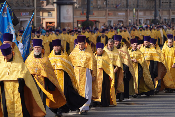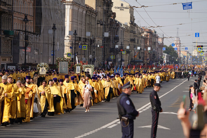 У нас сегодня в Петербурге по центру ряженые ходили с раскрашенными дощечками и цветными тряпочками. Крестный ход называется. Каждый год такое в эту дату, но в этот раз особенно помпезно было, дата круглая. Естественно, движение для простых смертных заблокировано, пробки жуткие. Бабла налогоплательщиков на шоу потрачено немеряно. Во время прохода по Невскому был замечен поп с модным пакетом из ДЛТ. (Кто не в курсе: ДЛТ аналог московского ЦУМа). Похоже, заскочил мимоходом, там рядом. И смех и грех)