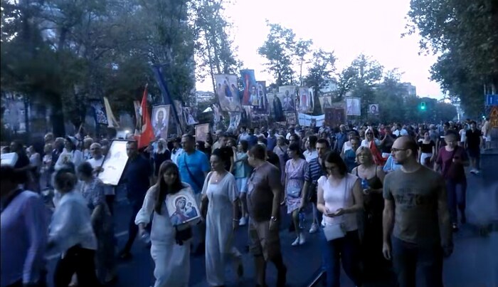 У Бранков Мост участники помолились. На гугл картах весь путь пешком по маршруте по котором шло шествие равно 3, 3 км.