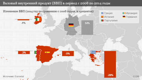 Оставались два других инструмента. Но снижение процентных ставок — прерогатива ЕЦБ, который ориентируется на всю еврозону, а не на Грецию. Третий инструмент — бюджетное стимулирование требовало денег, которых у Греции не было, потому что инвесторы не давали кредиты.