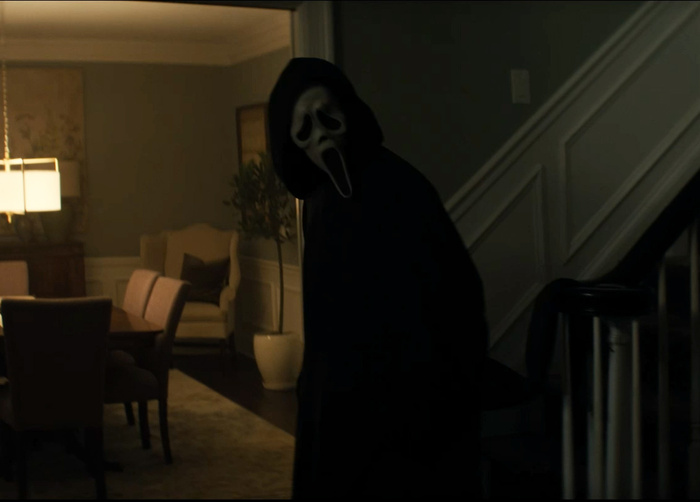Вобщем, сюжет у фильма очень простой. Сидни Прескотт живёт с семьёй никого не трогает. Муж - полицейский. Дочь выпендривается и выбрыкивается, как и положено молодёжи. И тут появляется очередной ГостФейс и как всегда всё портит своими наклонностями покромсать Сидни и её окружение. Незамедлительно приезжает репортёрша Гейл Везерс. Начинается Том и Джерри - т.е. ГостФейс бегает за жертвами, а они убегают и прячутся, где придётся. Т.е. тут больше ситуативный слэшер, чем какой-то внятный сюжет или раскрытие персонажей. Физика, как и в предыдущих частях, не особо реалистична. Но в целом ситуации получились вполне динамичные и напряженные. Между сценами кровавых потасовок есть некоторые диалоги.