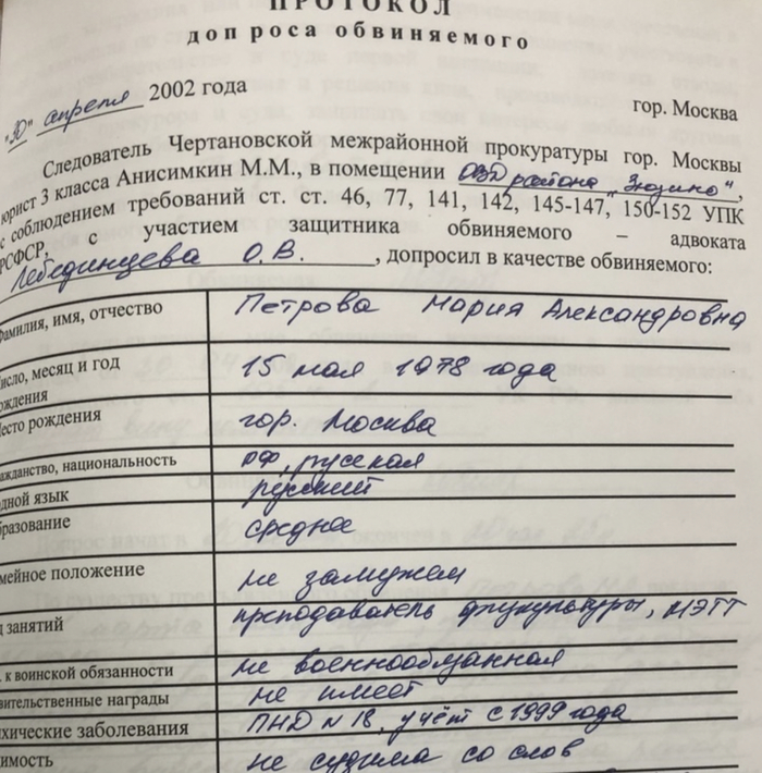 Следствие, психиатрия, детали допросов