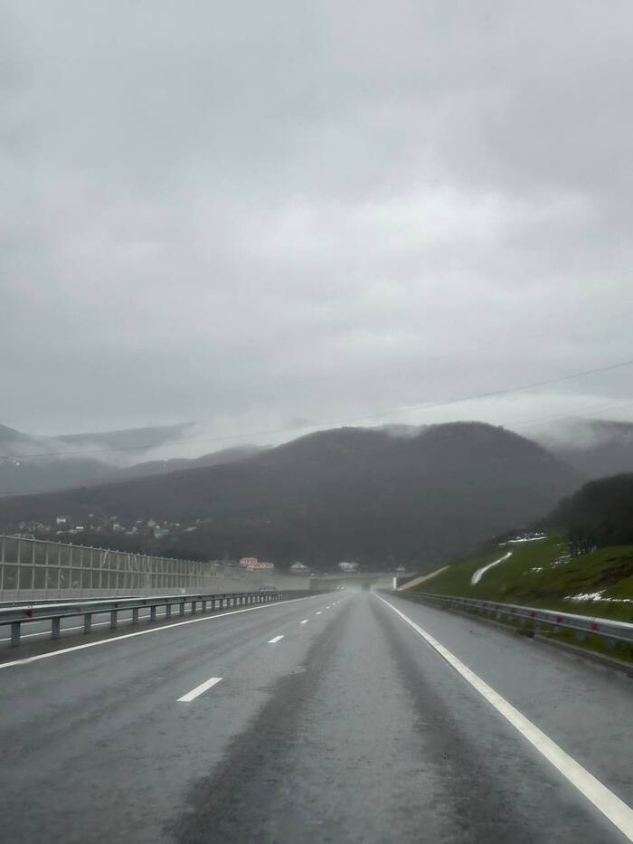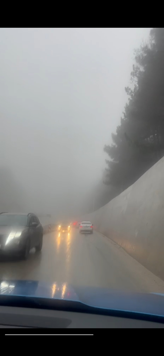 Ремонт Южнобережного шоссе тоже идёт вовсю, а еще там нас накрыл сильнейший туман. Камера телефона не передаёт его густоты, но глазу в принципе можно было зацепиться только за нечёткие силуэты стопарей едущей впереди машины.