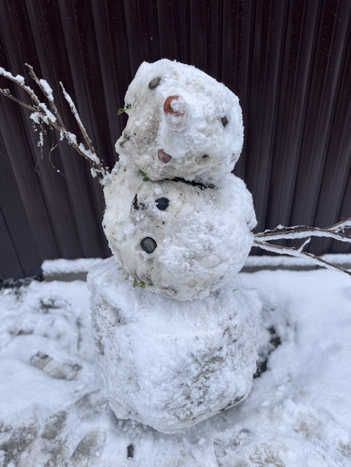 В прошлые новогодние праздники я провел на работе чуть больше, чем полностью, поэтому в этот раз отпросился даже на несколько дней раньше, и мы уехали в Краснодар. Как по заказу на сам Новый год выпало некоторое (весьма неравномерное по краю) количество снега, так что даже соседские дети, например, смогли слепить прекрасный символ наступающего года.