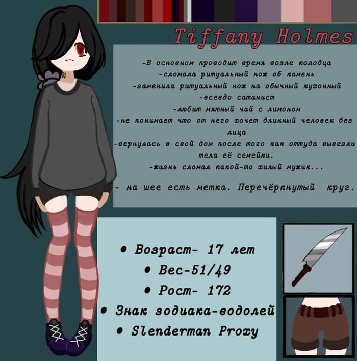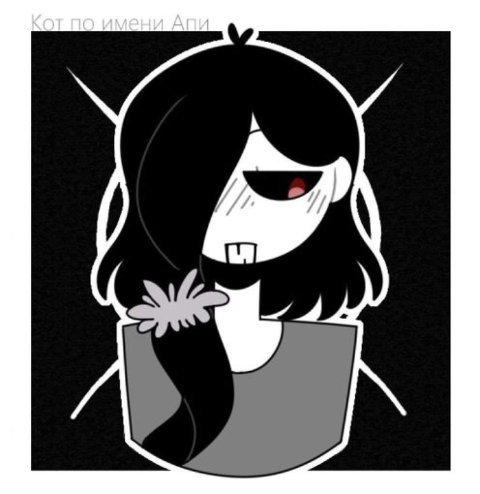 Здравствуйте, это не ожиданная новость для тех кто любит Creepypasta. У нас появилась новенькая в Creepypasta. Это у нас персонаж Zimi the killer, девушка с разрезанной физиономией, как выяснилось. Я заметила что персонаж отличается от любимого персонажа Jaff the killer которые так любят криповики. История Zimi the killer отличается от других историй героев из крипипасты. Дорогие криповики, надеюсь новенькую полюбят в Creepypasta, не знаю с кем её будут шипперить, вам виднее. Судя по истории Zimi the killer что она не когда не заведёт друзей, так как у неё не когда их не было. Девушка умная, серьёзная, скромная, для неё кто-то найдётся в друзья, наверное. Не бывает людей без счастье, рано или поздно счастье находит человека сама. Кажется что Зими подружится более с серьёзными людьми, такие как Слендермен. Читая описании внешности новенькой, художник или вы можете её нарисовать, так как её внешность в интернете трудно найти по запросу.