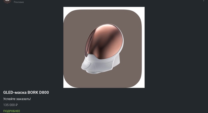 Дальше какая-то маска. Чесно говоря я не понял что это такое? БДСМ маска для любителей научной фантастики? И почему цена в 135 000 рублей? Погуглив я понял что это косметическая маска. Но принцип её работы я так и не понял