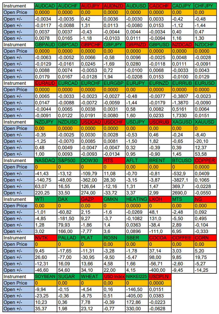 Весь перечень анализируемых активов указан ниже в общем количестве 62 инструмента. Здесь Вы найдете активы рынка Форекс, популярные активы Московской биржи, не менее популярные активы Чикагской биржи СМЕ и мажор криптовалютного сегмента - Биткоин, за которым следуют все альткоины.