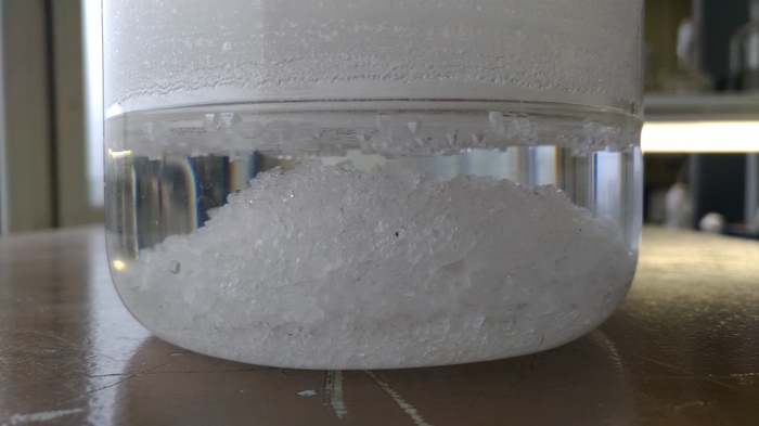 Недавно видел на Pikabu видео где показывали как постоявшая на морозе в закрытой бутылке вода оставалась в жидком состоянии, но при сотрясении мгновенно кристаллизовалась и превращалась в лед. Сегодня утром обнаружил что купленная накануне бутылка с водой, простоявшая в ночь машине на улице - не замерзла. Решил попробовать и все получилось точно так же!!! Прочитал что чистая (дистиллированная) вода не замерзает. В ней нет центра кристаллизации (посторонние примеси, частички) Пока бутылку сильно не возмущать … При ударе вода практически сразу кристаллизуется.