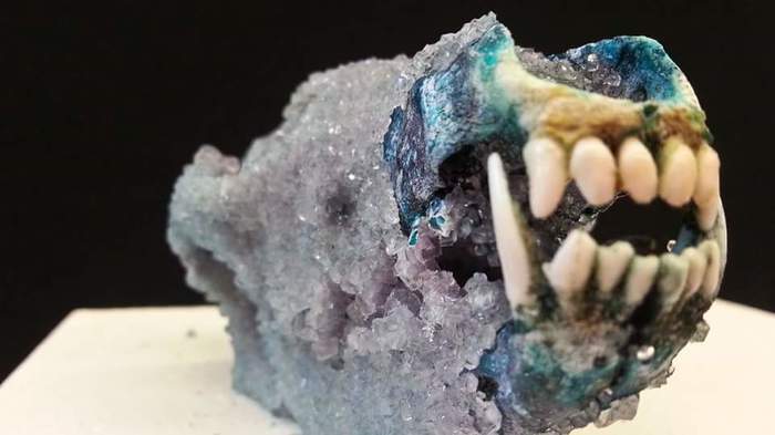 Великолепная инсталляция кристаллизованного черепа койота, который выглядит подходящим для размещения в каком-нибудь художественном музее.