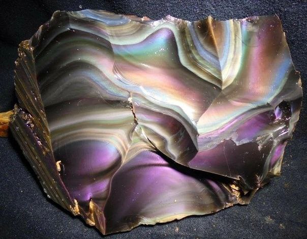 ▪️Радужный обсидиан представляет собой увлекательную вариацию природного вулканического стекла, демонстрирующего потрясающее множество переливающихся цветов. Игра цветов является результатом микроскопических минеральных включений, таких как наночастицы магнетита, рассеивающих свет в замысловатых узорах.