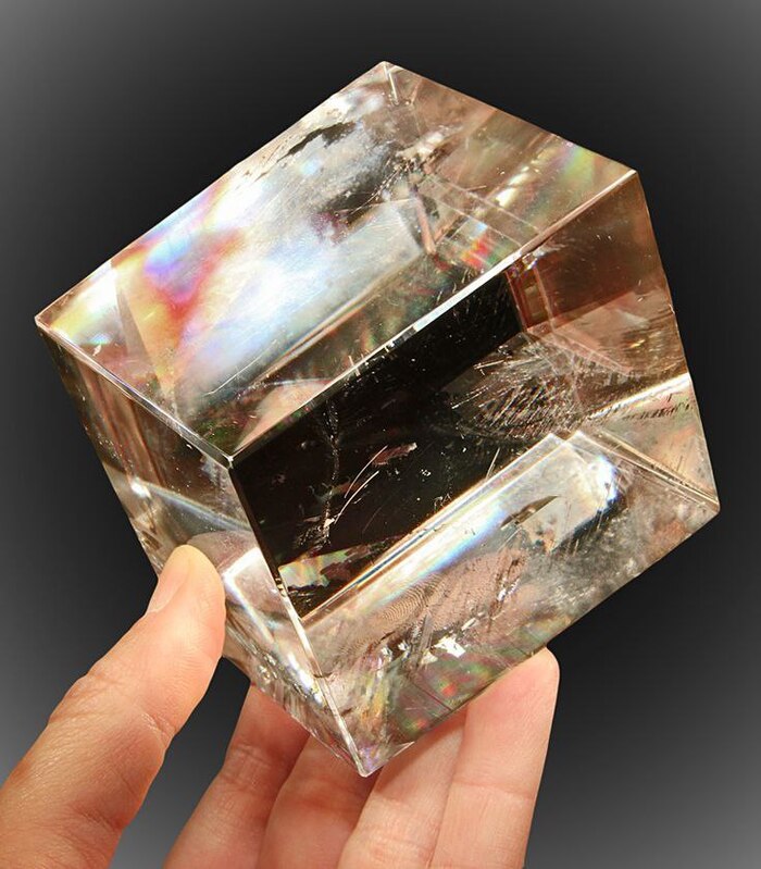 Крупные прозрачные кристаллы кальцита, по месту одной из первых находок этой разновидности, известны как исландский шпат. В ромбоэдрах исландского шпата можно рассмотреть интересное оптическое явление. Все, что видно сквозь них, создаёт иллюзию раздвоенности.
