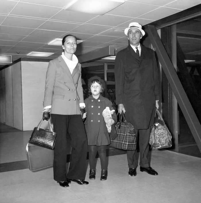 1970. Кристофер Ли со своей женой Биргит и дочерью Кристиной в аэропорту Хитроу после возвращения из отпуска на Бермудских островах: