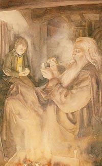 Хоббиты должны выглядеть меньше, чем другие персонажи фильма. Когда я, как Гэндальф, встречаю Бильбо или Фродо дома, я бьюсь головой о стропила. (Толкин даже не подумал об этом упомянуть!) Итак, есть небольшой Бэг-Энд с небольшим реквизитом для соответствия. Поскольку Иэн Холм и Элайджа Вуд были бы слишком велики для работы с таким реквизитом, у них есть «дублëры масштаба», которые соответствуют размеру декораций и миниатюрной мебели. На маленькой съёмочной площадке Бильбо и Фродо играет Киран Шах (фильм «Легенда», 1985). Благодаря невысокому росту, он выглядит действительно как хоббит рядом со мной в роли Гэндальфа.