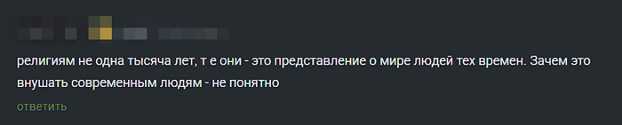 Но я бы при такой идеологии жить не мог — личная свобода важнее религиозных взглядов. Это как птица, запертая в золотой клетке, которая никогда не узнает, как прекрасен (и суров) реальный мир.