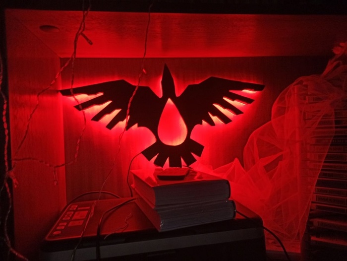 Для упрощения работы и простых проектов лучше выбрать фигуру, где можно проложить неон одним контуром без разрезов. Между двух основных вариантов Герба Кровавых воронов был выбран классический.