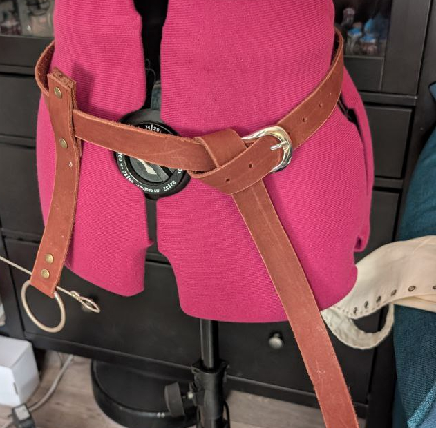 Ремень с кольцом для юбки я специально решила не обрабатывать по краям, чтобы он выглядел более потрепанным и заношенным