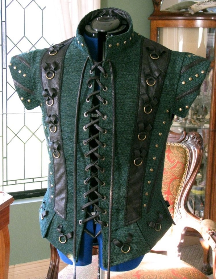 Этот косплей был не очень сложным и требовал только доработать часть деталей вручную: пробивка и установка +- 40 люверсов и много ручной обшивки контуров.