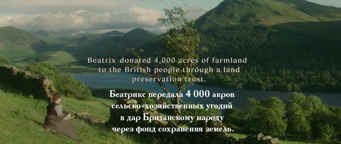 Фильм советую посмотреть тем, кто увлекается вопросами сохранения природы. Интересные факты о писательнице и художнице, которую эти вопросы не только волновали, но и сподвигли на конкретные благородные поступки: Беатрикс Поттер передала 4 000 акров сельско-хозяйственных угодий в дар Британскому народу через фонд сохранения земель. Она выросла на природе. Природа стала и воспитателем её, и вдохновителем всего её творчества.