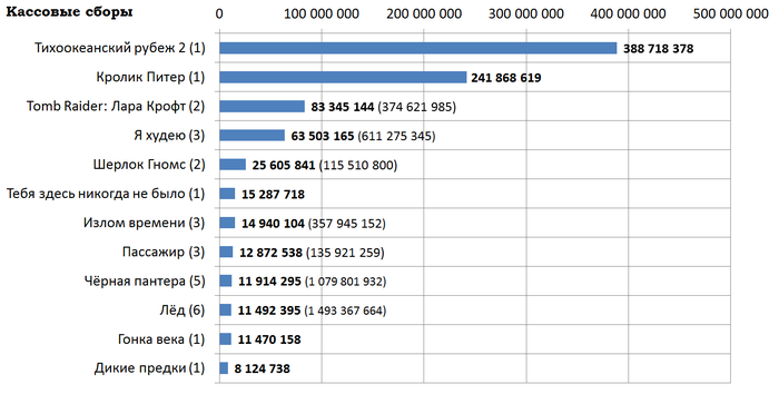 Цифра в скобках после названия обозначает, какую неделю фильм идёт в широком прокате.