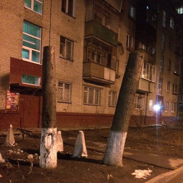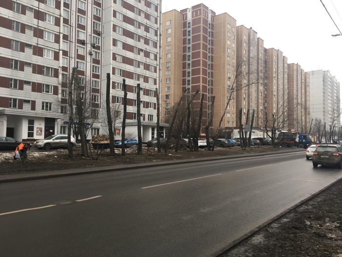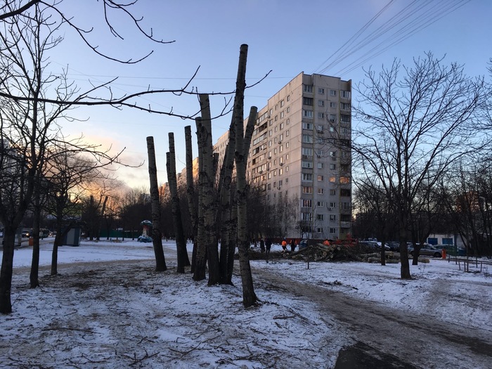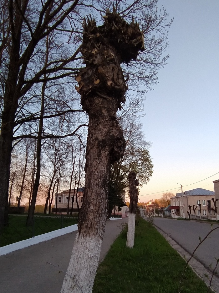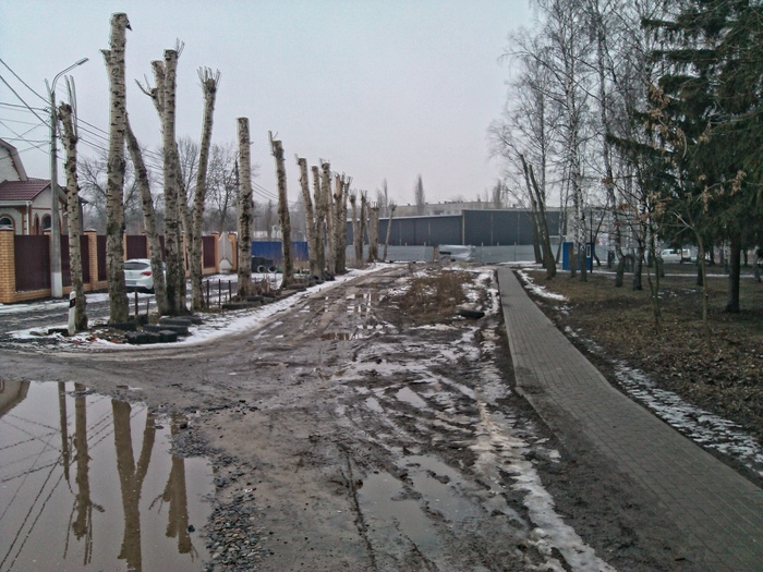 В конце прошлого года и в начале нынешнего провели оболванивание берез. Нашел на просторах сети лишь одно фото, но также поступают и со взрослыми деревьями. На березовые аллеи больно смотреть.