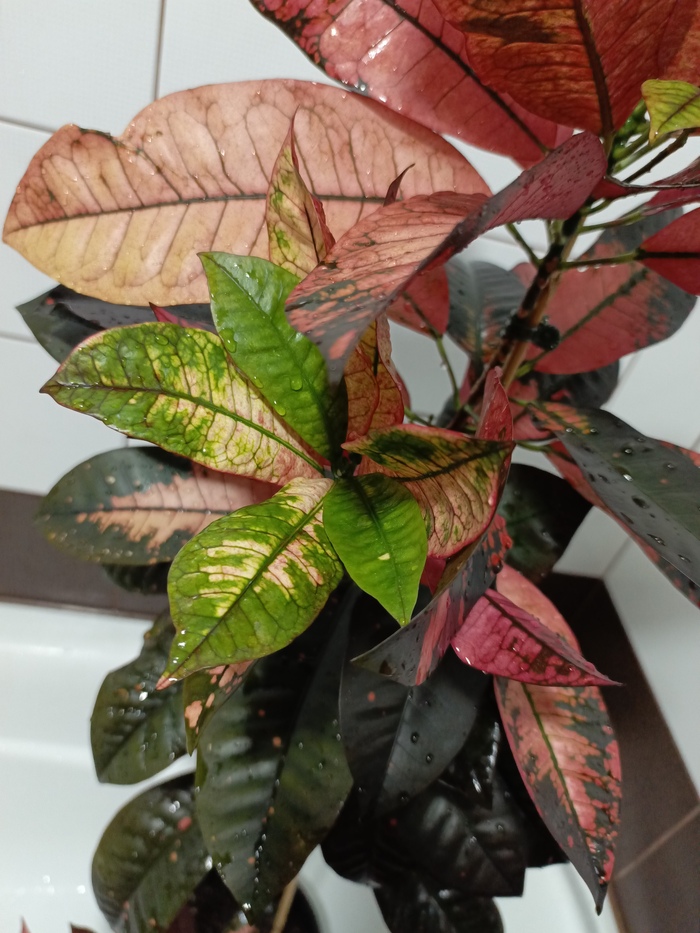 Есть кротон мамми, в который я влюбилась из-за его прекрасного окраса: лист вылезал зелёный, но по мере роста менял окрас на такую красоту:
