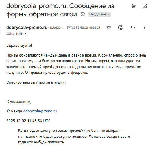 С оригинальным брендом не было даже близко такого - акция есть, значит есть приз. Не надо вылавливать минуты в которые приз будет доступен - едешь и забираешь его.