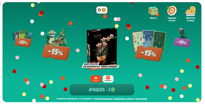 На Яндекс Маркете проходит такая штука. Бесплатно лутаешь монетки, делаешь прокрутку, и есть шанс что-то выиграть.