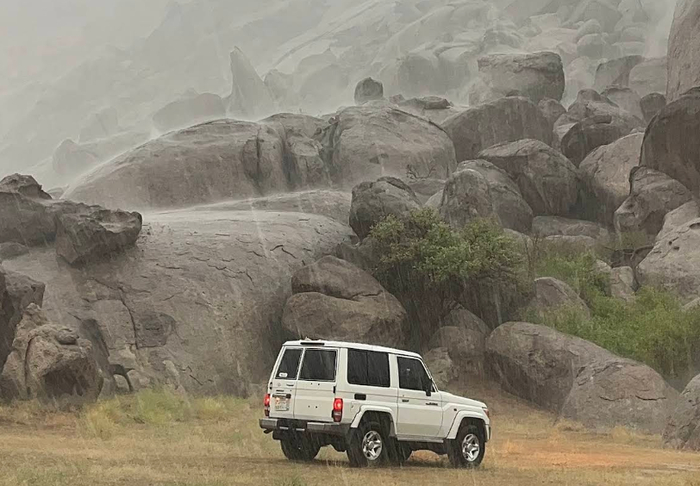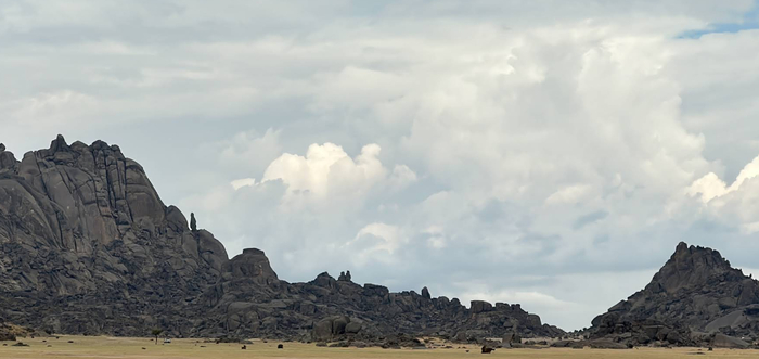 Иногда посреди ровной пустыни появляются вот такие скалы-останцы: