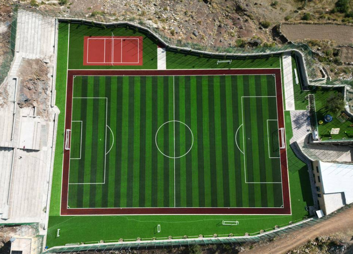 Современный стадиончик посреди гор. Очередная загадка.