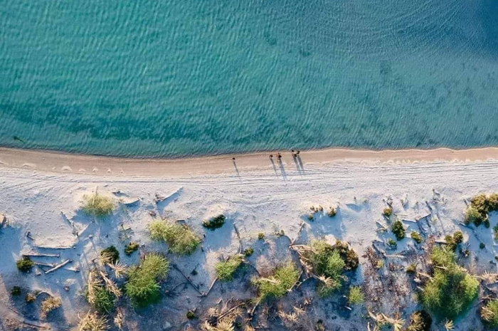 Довольно часто тут попадаются песчаные островки или полуостровки, отступающие на несколько километров от берега. На них ничего нет, но красиво на закате. Типа такого: