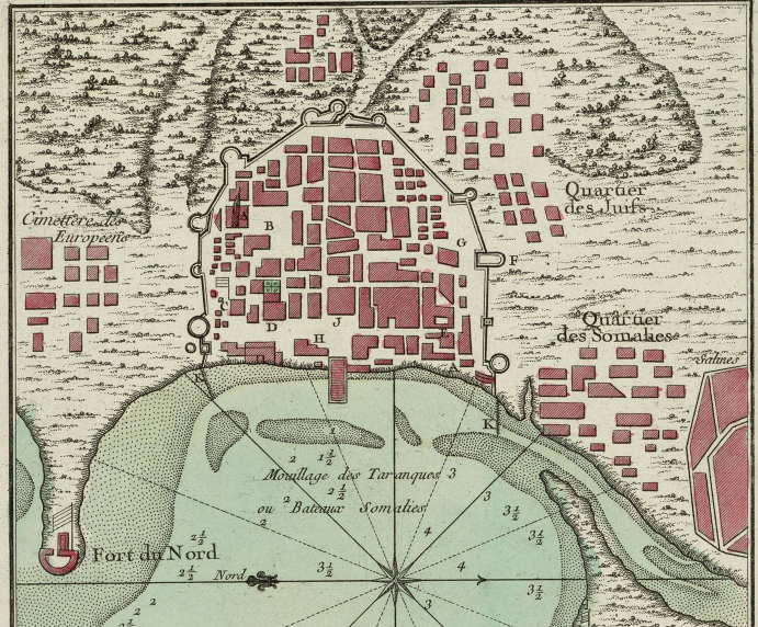 На плане Мокки 18 века можно заметить интересную деталь: иностранцы жили за пределами города, где образовались европейский, еврейский и сомалийский кварталы: