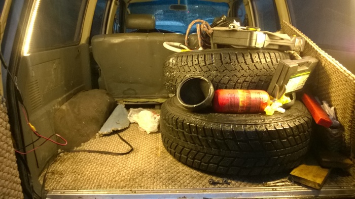 Сегодня, несмотря на дождь, решил наконец перебрать всю ту гору вещей, которая перешла ко мне вместе с машиной. Пару дней назад на пару с другом уже закинули ко мне домой два колеса и лебёдку. На этот раз пришла очередь всего остального.