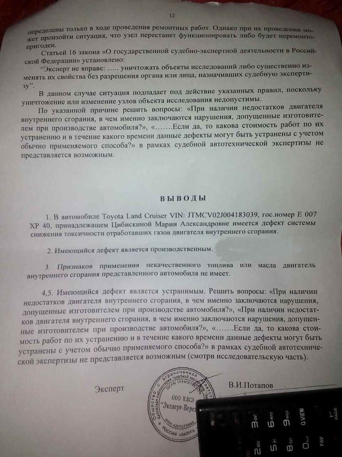 Однако в суде была поведена экспертиза, которая установила, что признаков использования некачественного топлива не обнаружено. Тойоту не устроил этот ответ. Они стали орать, что эксперт куплен, и добились в суде второй экспертизы.