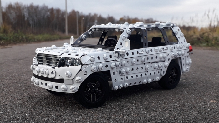 Jeep Wrangler, Land Cruiser, Range Rover из металлического конструктора, проволоки, резины и картона