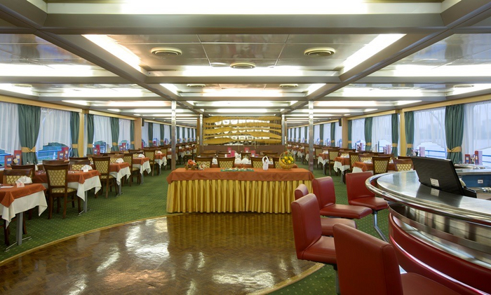 Небольшой четырехпалубный теплоход отличается современным ремонтом: светлые тона в интерьерах делают помещение просторным и уютным. В ресторанах стильные мягкие кресла и кожаные диваны.