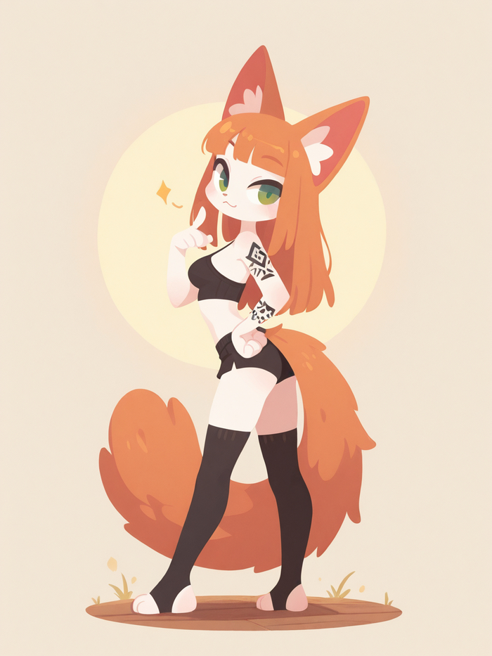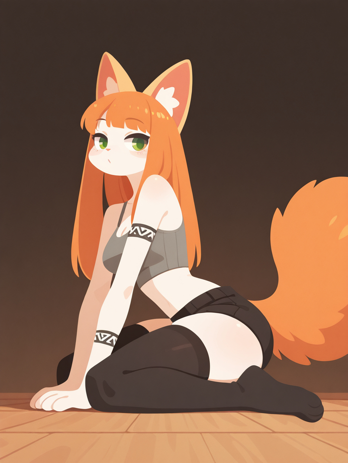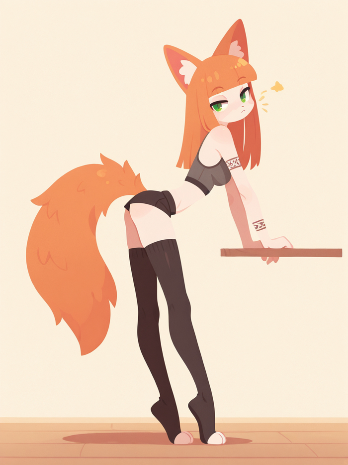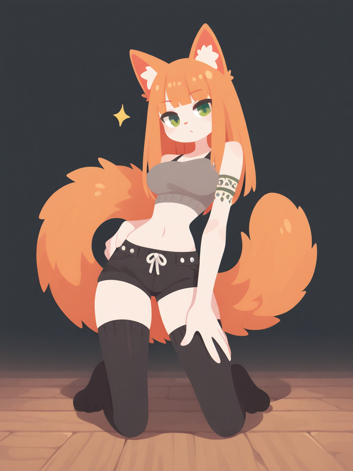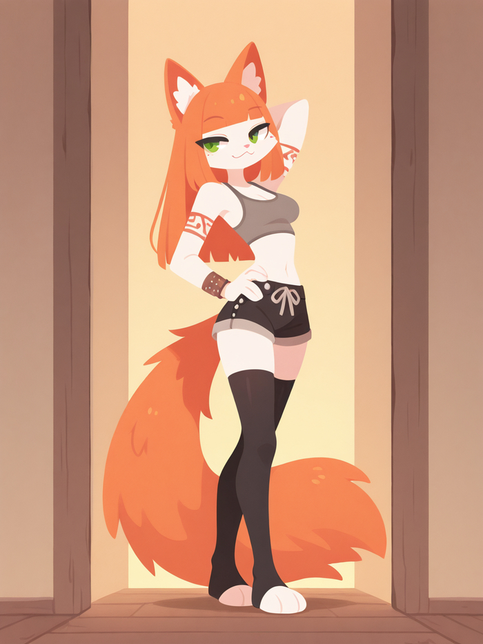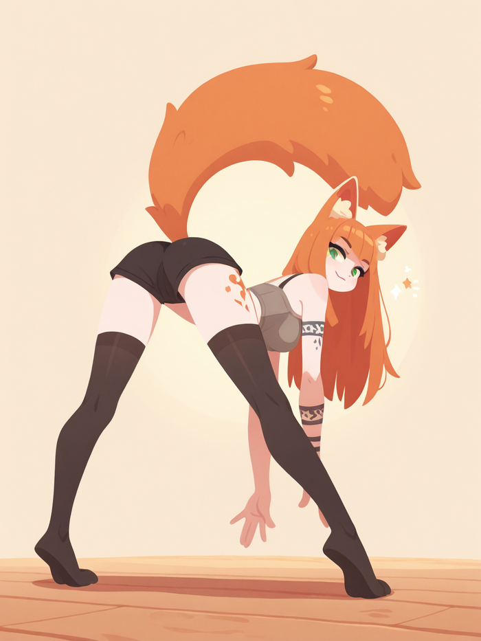 [моё] Арты нейросетей Аниме Stable Diffusion Рыжие Sdxl Фурри Неко Уши Хвост Шорты Чулки Тату Длиннопост