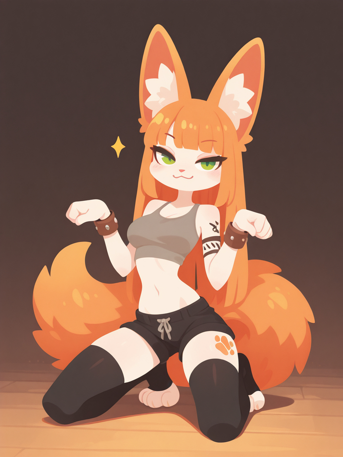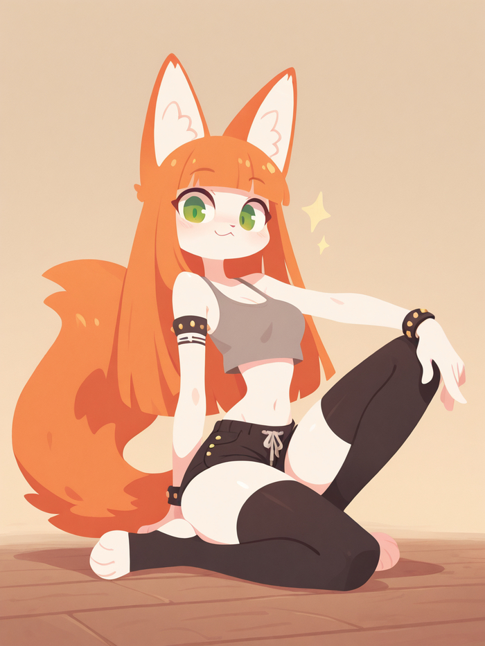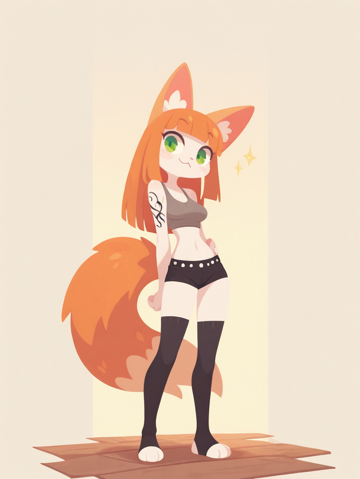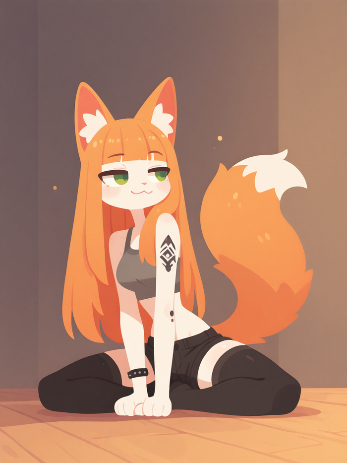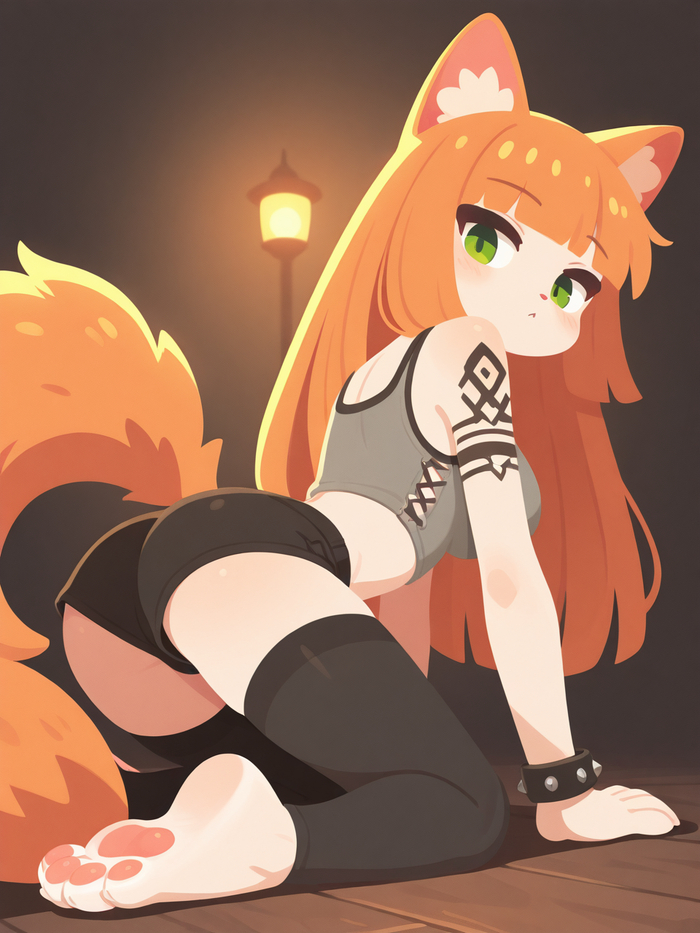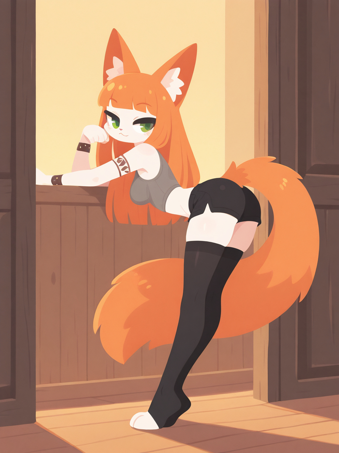 [моё] Арты нейросетей Аниме Stable Diffusion Рыжие Sdxl Фурри Неко Уши Хвост Шорты Чулки Тату Длиннопост