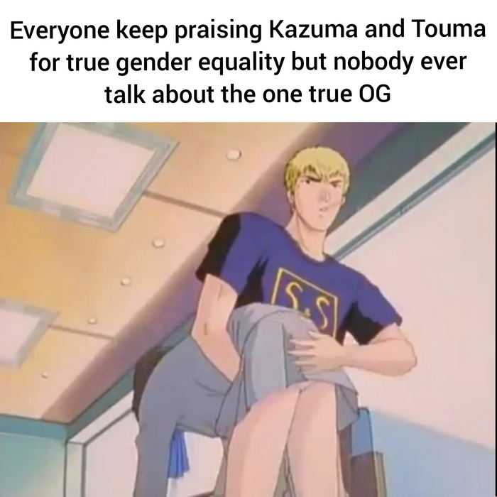 Все продолжают восславлять Казуму и Тоуму за их отношение к равенству полов, но никто не говорит про того с кого это началось